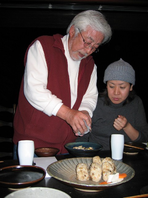 | 天女座物語217 2004/11/30 湯布院には友人の山田文(あや)ちゃんの別荘があります。 何度も泊めてもらいましたが、ある日、西念寺の和尚の井出さんがその別荘の 隣にある大豪邸の日本画家、笠青峰さんを紹介してくれました。 先生のアトリエは、由布岳が一望できる場所にありガラス張りです。 そして、その下には200名くらい収容出来るホールがあるのです。 そこには、スタインウエイのピアノがあります。 超一流のクラシックの音楽家の方の演奏会を年に、2,3回開いておられます。 私たちも先生に食事に招いて頂き、食後に下で即興演奏をしたりして 何度か大いに盛り上がりました。 先生のホールのこけら落としに、岡村喬生先生が来られたそうで 岡村さんとの縁もあるので、親しみを感じました。 しかし、2年前に先生の愛娘の彩子さんが急死され先生に何とお声をかけて よいかわからずしばらく連絡をしていませんでした。 今回、久留米の後に文ちゃんの別荘に泊まったので先生にお電話してみました。 「一緒にご飯食べましょう!たくさん材料があるから。」と嬉しいお誘い。 夕方、丸山さん、文ちゃん、文ちゃんのお友達、皆それぞれ子供たちと 私たちでお伺いしました。 先生のお手製の「レンコンレバもやし炒め」がおいしかったです。 「月がもうそろそろ出てくるからね。」 「まだ、どこかのお座敷に呼ばれているみたいで中々出てきませんね。」と私。 そのうち、月が出て、由布院の町の夜景が綺麗!一同感激! その後、下のホールで獅子舞を見て頂き、ピアノ即興やトンちゃんの インディアンフルート即興など。先生は本当に喜んで下さいました。 先生が娘さんの彩さんを思って描かれた「彩杜(あやのもり)」という 絵は温かくて美しくて先生の思いが伝わって来ました。 先生は、「再来年、岡村先生とあなたたちのジョイントコンサートをやろう!」と はしゃいで早速携帯で岡村先生に電話。 先生は酔っ払っていたので「伊吹しほさんが、熊野から」と言われたので 電話にでた奥様は????何のことか分からない様子。 私が代わって「紫帆です。」と言うと「あらー!矢吹紫帆さん? 主人は生憎出かけているので、残念です。」「また先生にメールをしますので。」 笠先生との楽しい一夜の後、翌日は、鉄輪温泉に行きました。 鉄輪温泉は、狭いくぐり戸を抜けて、石昌の草のベッドに寝そべる蒸し風呂で 10分もすると、汗がだくだく・・・。本当に効きました。 文化財的な温泉で歴史もあるようです。お蔭で帰りのフェリーでは二人とも ヘロヘロでした。しかし、九州はゴールデンツアーやなあ! と二人で感動して帰途につきました。 |